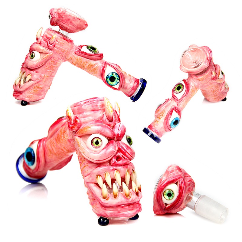 These monster hammer pipes are hand made with the finest quality glass & resin to give them their gruesome looking 3D design.. They are great feature pieces for something abit fun. Included in the pipe is 6 stem perk and a customized bowl for each piece. Available in 4 equally scary designs!
