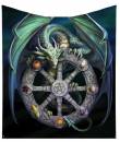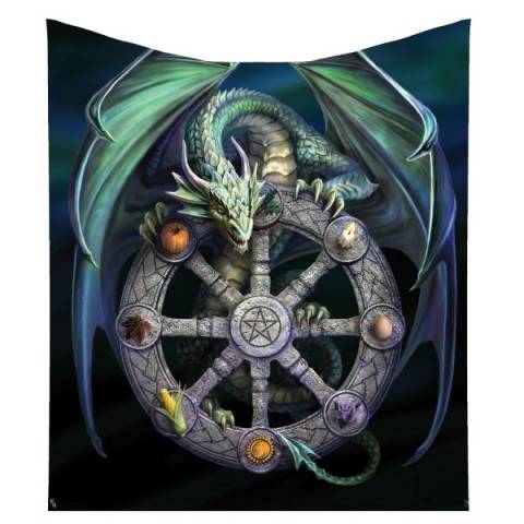 This throw that features a majestic Emerald Dragon was formulated in the mind of the world-class fantasy artist Anne Stokes. Celebrating the Pagan representation of the annual cycle of seasonal festivals, this Wheel of the Year has carefully chosen symbols to illustrate the year’s chief solar events and the midpoints between them. Protruding from each of these symbols, a spoke appears, connecting them to the central pentagram. Between the spokes, we see emerald scales and yellowed underbelly of a magnificent Dragon who climbs up to peek over the top of the wheel. Imaginatively crafted and expertly detailed, this piece is perfect for any Dragon enthusiast who seeks to honour their Pagan traditions.