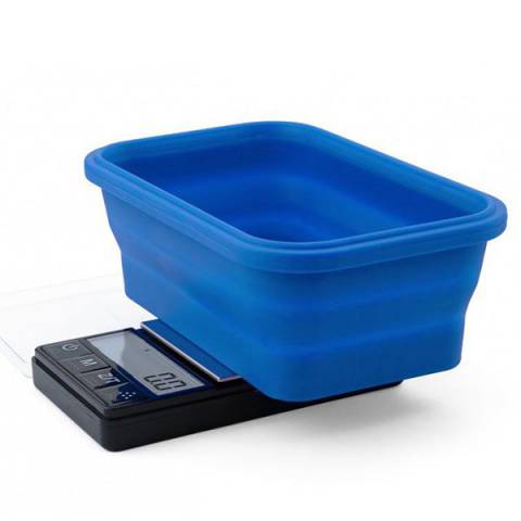 The ORIGINAL Silicone Bowl Scale includes a large collapsible silicone bowl and latching cover for incredible versatility. The silicone bowl contains and protects the scale when collapsed, keeping it safe from knocks and bumps. When fully expanded, the bowl provides a comfortably large volume for you to weigh your items in. Results are easy to read from the extra-large LCD with white backlight.