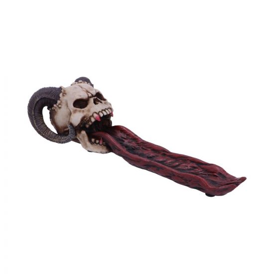 This painstakingly designed Bite Your Tongue Incense Burner, has a horned skull, mouth screaming with a veiny blood red tongue and fangs, which forms the incense holder. Cast in the finest resin before being expertly hand-painted, this incense burner will make the perfect gift to any horror lover.
