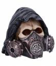 This Catch your Breath skull wishes to remain unidentified, with a dark jagged hood and a thick gas mask covering the majority of the face. Cast in the finest resin before being expertly hand-painted, this skull is the perfect addition to any gothic collection. Standing 19.5cm tall.