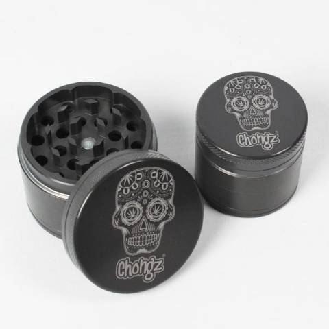 This Chongz 4 part grinder is just the job for grinding all your herbs, with its sharp teeth . It has been anodised for a nice smooth feel and finnish and adorned with the chongz candy skull, its a must for all skull loving herb grinding brothers and sisters.