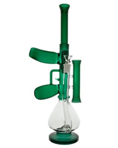 Introducing the new space age Chongz glass waterpipe 'Eton Rifle'. The AK-47 design is a must for any glass collectors collection, as the 'gun' is functional to smoke through. Stem percolator to break your hot smoke up, making it a more pleasurable hit. Removable bowl for a smooth airflow and allows you to clean it easier. Comes in 2 different colours