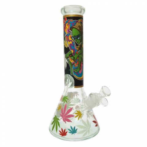 Vibrant, playful, and bold enough to turn heads in any room, the Chongz 30cm Glow Series “Black Leaf” Ice Bong is a celebration of cannabis culture in its trippiest, most animated form. With its glow-in-the-dark accents, colourful leaf patterns, and striking full-colour alien graphic, this bong is all about having fun — and getting high while you do it.