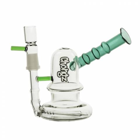 This small glass bong by Chongz features a side arm design and a drum percolator. The "Tiny Rye" bong is made from high quality, heat proof borosilicate glass and is a great small water pipe. The inline percolator design will help smooth and cool the smoke making sure you have the best smoking experience possible.