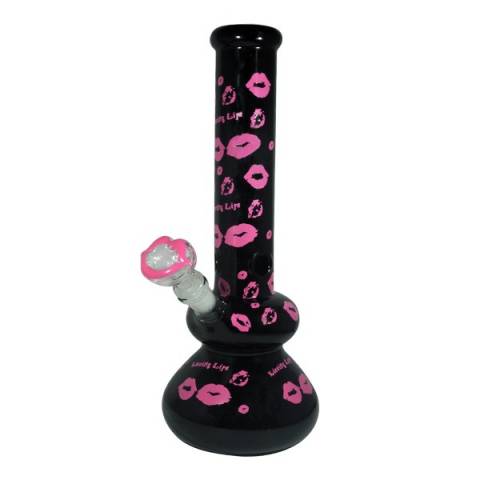 Chongz "Kiss My Ass" Glass Waterpipe £50.00Wrap your lips round this! Chongz 'Kiss My Ass' BLACK glass waterpipe adorned with funky lips design and glass lips downpipe to boot. Enter Quantity Product category: Glass