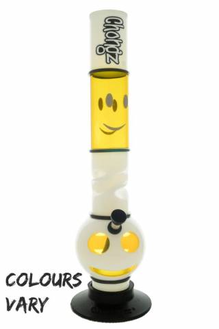 'Make Me Smile' 2 coloured acrylic waterpipe. Stands 40cm tall. Has an added 'ice twist' inthe middle for adding ice cubes to cool your smoke. Removeable downpipe and bass. Assorted colours given