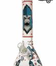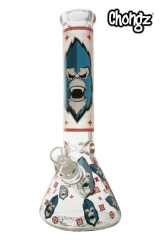 Looking for something different for your collection? 'Monkeee Man' is made out of sturdy 7mm glass, so small knocks shouldnt affect him. Monkey print on front as well as small pictures around the chamber/neck. Ice picks so you can add your own ice, giving you a smoother, much more pleasurable smoke. Removable glass downpipe and bowl, giving you an easier clean. 2 Different colours available.