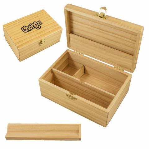 A trusty heavyduty hinged wooden rolling box with motif 'Chongz'.