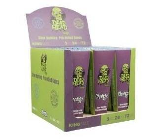 The new Chongz Dead Head Kingsize Green Pre-Rolled Cones merge practicality with a unique visual appeal, showcasing a distinctive "Dead Head" motif. These pre-rolled cones are designed for smokers seeking to infuse their sessions with individuality. Crafted from premium paper, they guarantee a consistent burn and a clean taste, ensuring a hassle-free and enjoyable smoking experience.