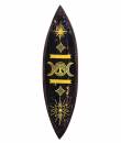 This striking incense bowl features the sacred Triple Moon symbol in radiant golden tones, representing the maiden, mother, and crone. Set against a glossy dark enamel background and framed by hand-carved mango wood, it’s a mystical piece for any altar or sacred space.