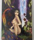 Enter a dreamlike realm of enchantment with the Fay Vision Card, a captivating piece of fantasy artwork by Lauren. This richly detailed image features a serene forest fae resting beside a cascading waterfall, bathed in natural magic and surrounded by vivid flora and fauna.
