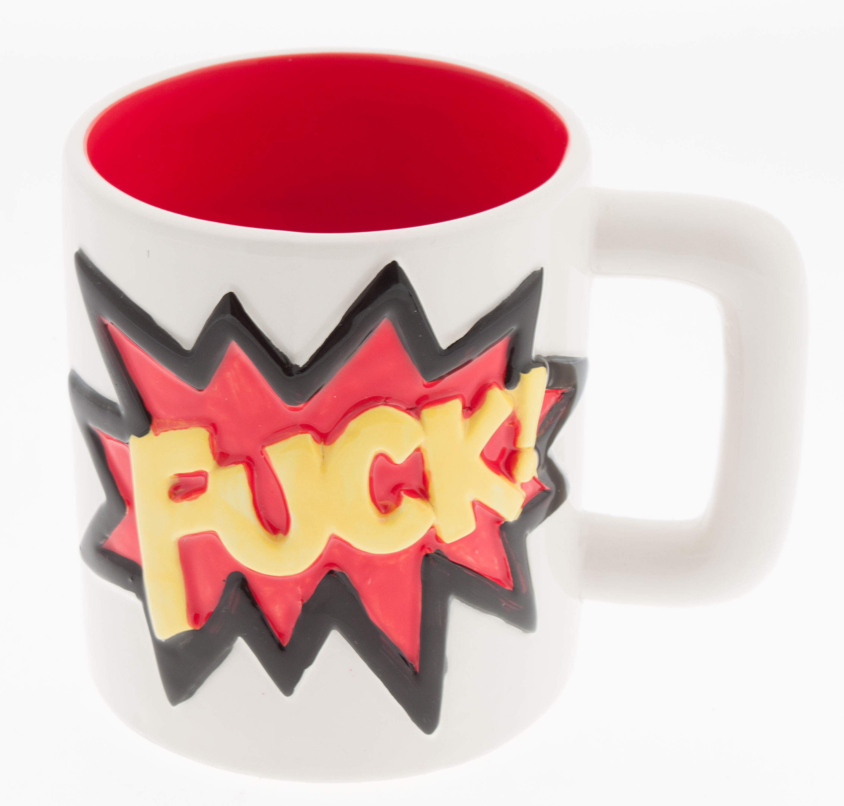 F**k Mug £5.00 This naughty but nice mug is double the size of standard mugs...approx height is 110cm and 110cm width..this is one mighty mug... perfect for Monday's! Enter Quantity Weight: 2 kgProduct category: Giftware