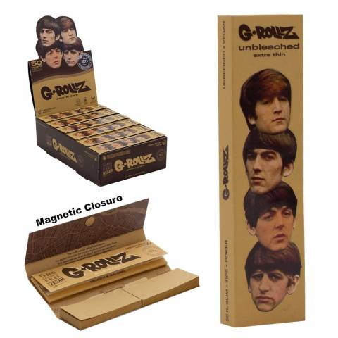 G-Rollz 'Fab 4 Heads' Unbleached Extra Thin King Size Papers + Tips & Poker