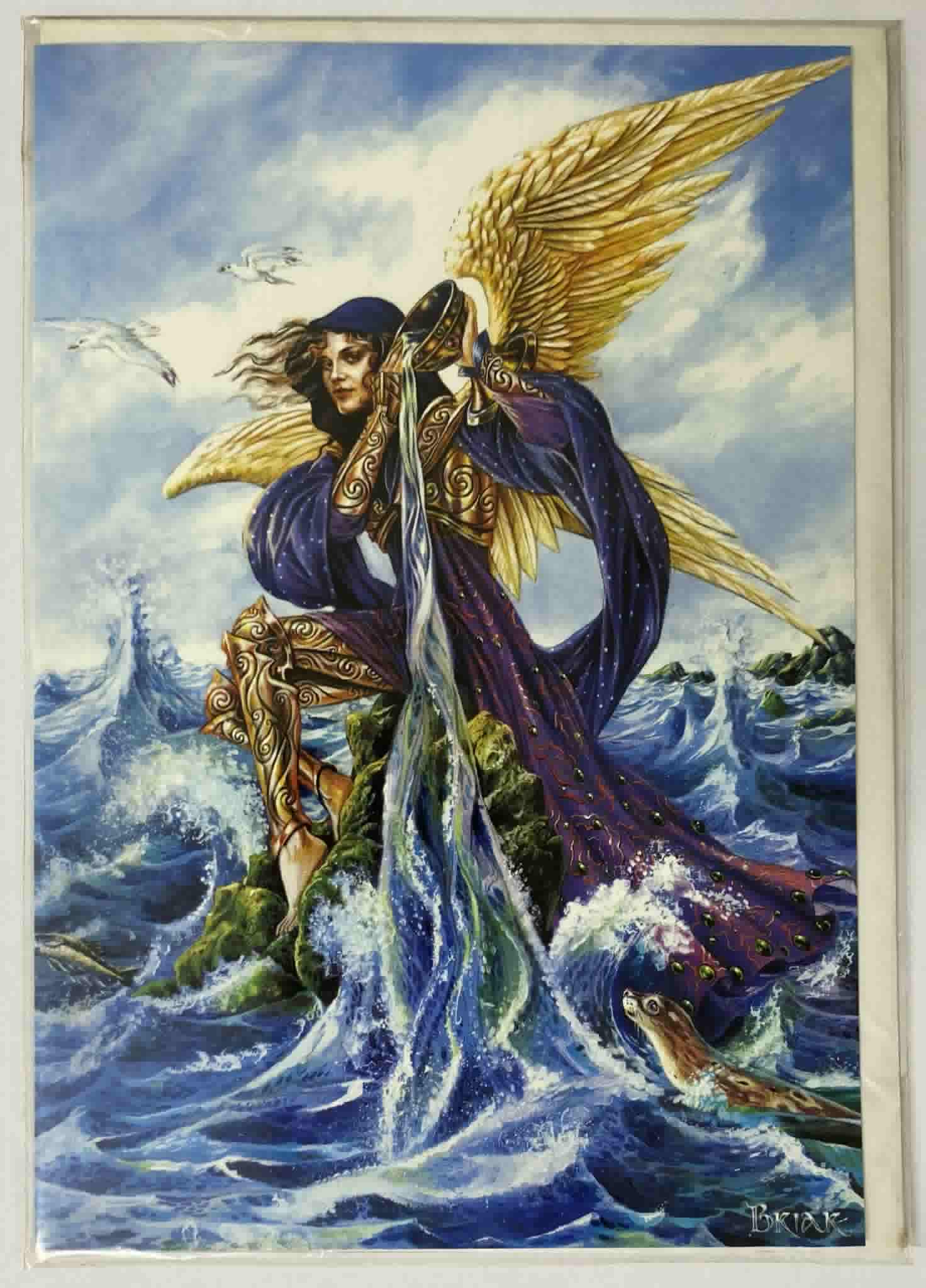 Send a message of divine strength and serenity with the Gabriel Gift Card, featuring enchanting artwork by renowned fantasy artist Briar. Depicting the archangel Gabriel standing amid powerful ocean waves, this majestic illustration combines celestial grace with elemental force. Golden wings, intricate armor, and flowing robes create a striking scene filled with symbolism and mythic beauty.