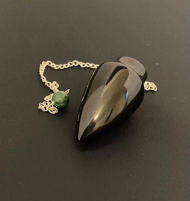 The most commonly used tool for dowsing is a pendulum; a pendulum is a weighted object usually a crystal or gemstone that is hung from a metal chain or pendant that allows the user to tap into their intuition for spiritual guidance. Black Obsidian is the gemstone that promotes protection and absorbs negative energies and influences around you. A grounding crystal, it can aid in providing feelings of stability and security at times when life is looking the opposite. Black Obsidian is the perfect pendulum to use with questions pertaining to house moves, relationship break-ups and financial worries. This piece has a choice of size.