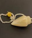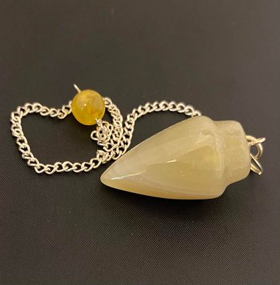 The most commonly used tool for dowsing is a pendulum; a pendulum is a weighted object usually a crystal or gemstone that is hung from a metal chain or pendant that allows the user to tap into their intuition for spiritual guidance. Cream Moonstone is associated with Feelings, intuition, the heart and fertility. it helps to bring into balance the 'psychic' side in us with confidence to trust that inner voice. Cream Moonstone relates to 'new beginnings' and 'fresh starts'. This is the perfect pendulum for everyone looking for answers relating to new challenges and beginnings.