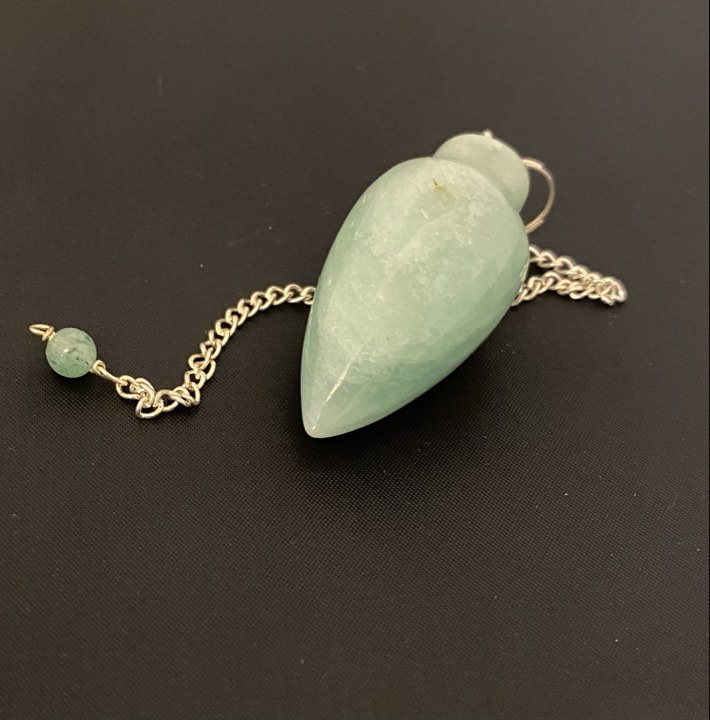 The most commonly used tool for dowsing is a pendulum; a pendulum is a weighted object usually a crystal or gemstone that is hung from a metal chain or pendant that allows the user to tap into their intuition for spiritual guidance. Green Aventurine is the gemstone that promotes calmness and stills worry. It also aids leadership qualities and helps those needing more assertiveness. It is a wonderful crystal for boosting inner trust in your own abilities and caring less about those around you trying to put you off course. This is the perfect pendulum for questions pertaining to jobs whether new ones or improving current ones. This comes in a choice of size.