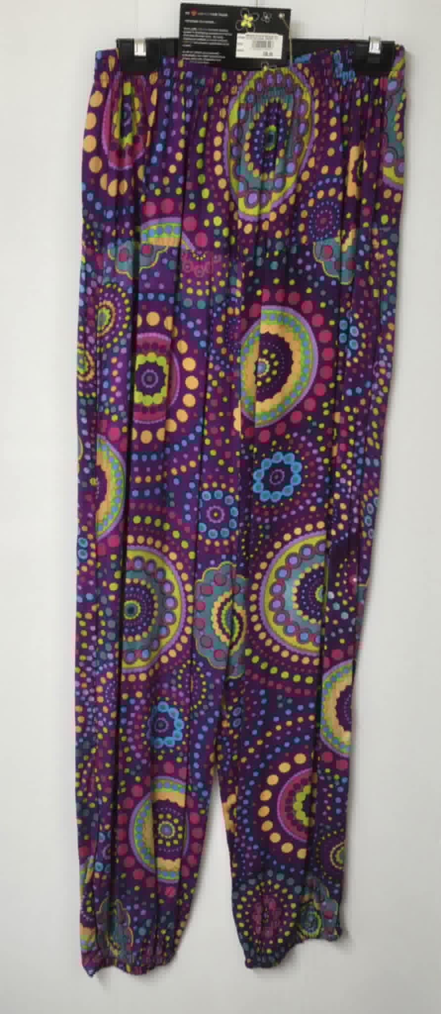 Stand out in comfort and style with these Gringo harem trousers, featuring a striking black, purple, and orange mandala‑inspired circular pattern. Made from lightweight, breathable 100% cotton, they offer a relaxed fit with an elasticated waist and ankle cuffs for ease of movement. Perfect for festivals, lounging, yoga, or adding a splash of colour to your everyday look, these trousers combine vibrancy with all‑day comfort.