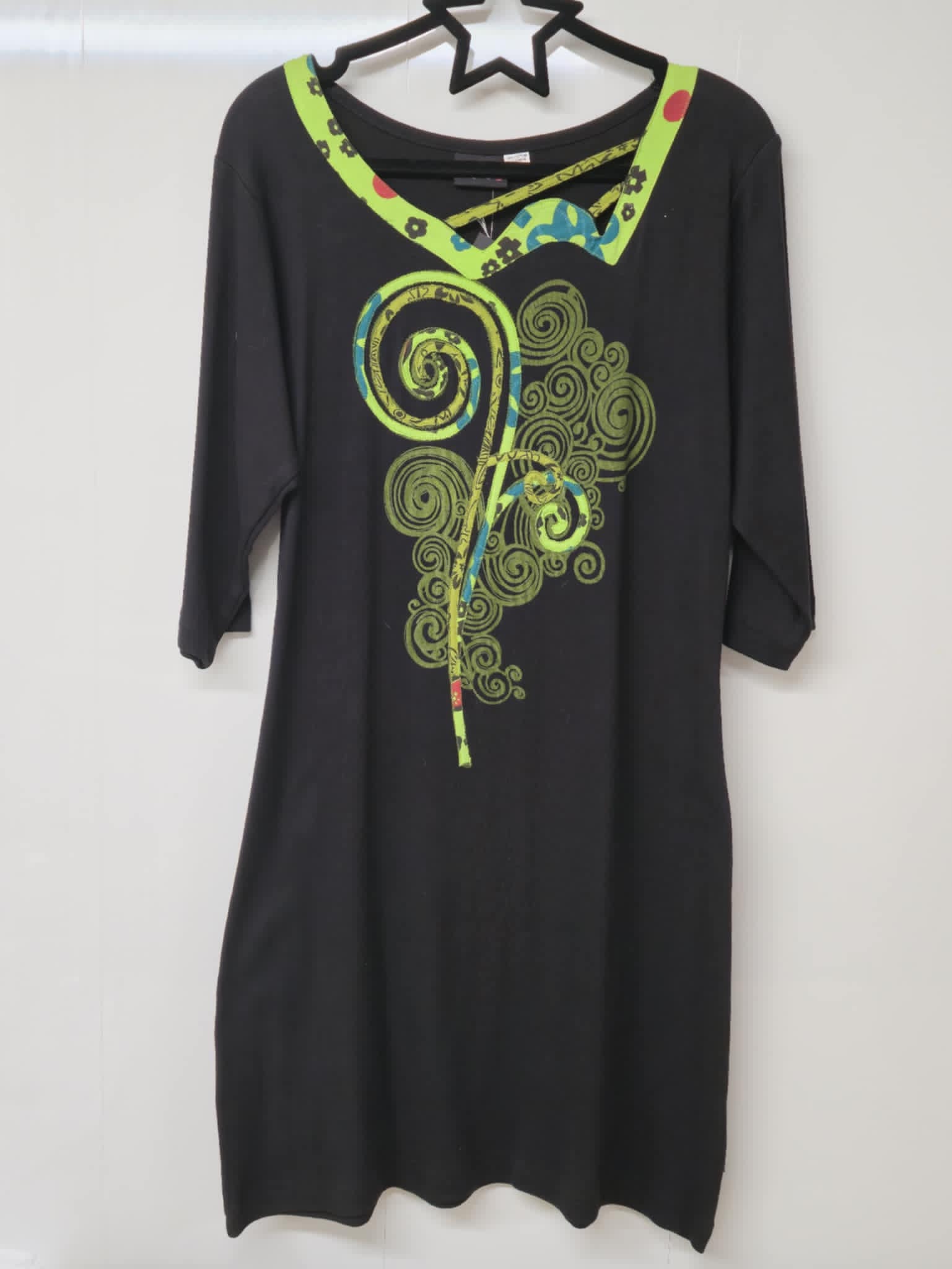 Add a touch of boho charm to your wardrobe with the Gringo Long Sleeved Emb Tree Dress. Made with care and creativity, this unique piece features a vibrant embroidered tree design in swirling shades of green, accented with colorful patchwork details for an extra pop of personality.