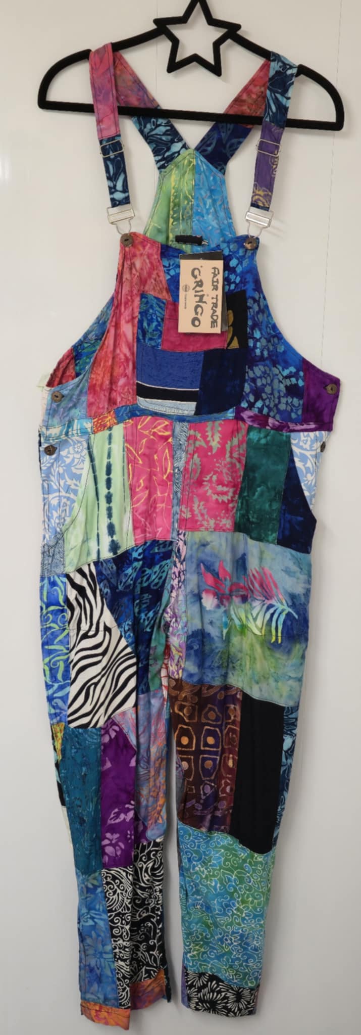 Add a burst of colour and creativity to your wardrobe with these unique Gringo Patchwork Dungarees. Crafted from an eclectic mix of vibrant, ethically sourced cotton fabrics, each pair is a wearable piece of art. No two are exactly the same!