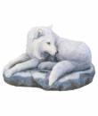 This lone wolf lays on a moonlit mountain top to rest, still alert to danger and cautious. The light of the moon casts a hue over his white fur. This stunning figurine is cast in resin and beautifully hand painted.