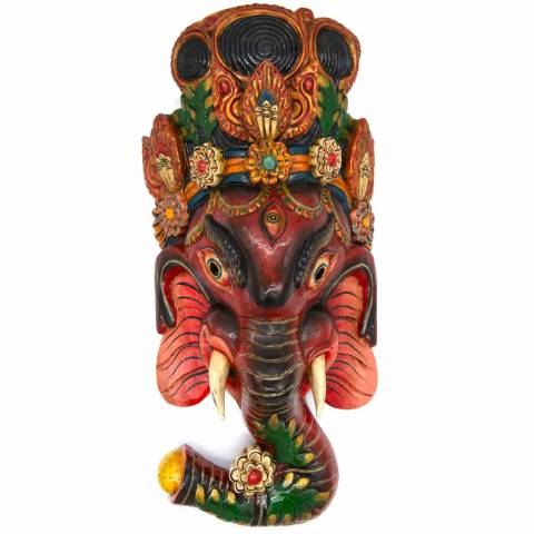Ganesh masks like this are used in Nepalese festivals and rituals to invoke his blessings of wisdom and success. The elephant head symbolises intellect and auspicious beginnings, making this mask a meaningful addition to a practice space or living area. The bright paintwork reflects the joyful celebration of life and the arts.