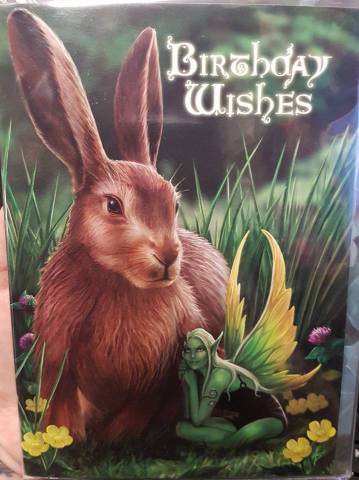 Hare & Sprite 'Happy Birthday' Greeting Card – Art by Anne Stokes
