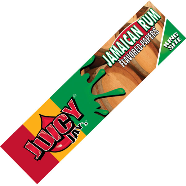 Kingsize, fully flavoured Juicy Jay rolling papers in 'Jamaican Rum'.
