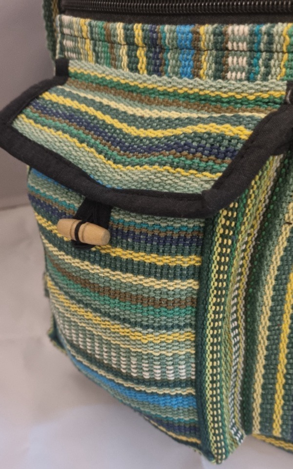 These beautiful woven bags Come in a variety of colours that can be chosen in a drop down. They consist of two front pockets one which is closed by a button and the other by a zip as well as the main zip part of the bag which has plenty of room to hold goods. Aprox 38cm by 29cm.