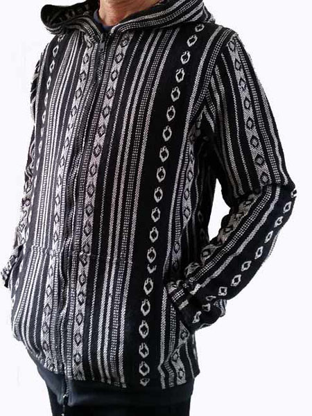 Kashmir Napalese Fleece Lined Zip Up Baja Hoodie (Black&White)