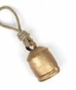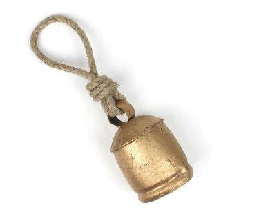 These large rustic cow bells are tied onto a suitably chunky length of rope and knotted with a loop for hanging. Great for hanging up in the house, wearing on your person for a noisy strut or for putting on your prize cow. Total hanging length approx: 22cm