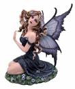 - Resin figurine of a kneeling fairy adorned with lavender accents