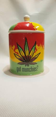 Leaf Cookie Jar £12.50Got munchies? Buy our newest Leaf Cookie Jar! Sharing is caring ! Stash away your cookies in this awesome rasta design jar Colour: Tricolor Enter Quantity Weight: 2 kgProduct category: GiftwareSize: LargeDesign: Marijuana