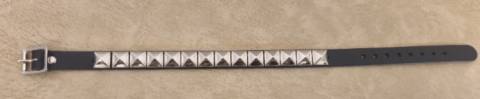 Elevate your style with this striking leather pyramid stud choker. Crafted with meticulous attention to detail, this choker features one row of fourteen pyramid studs, creating a bold and edgy statement piece. The high-quality leather ensures durability and comfort, making it ideal for everyday wear. The metal buckle not only adds to the rugged aesthetic but also allow for easy adjustability, ensuring a secure and perfect fit for any neck size. Whether you're heading to a concert, a night out, or just want to add some attitude to your everyday look, this choker is the perfect accessory to showcase your unique style.