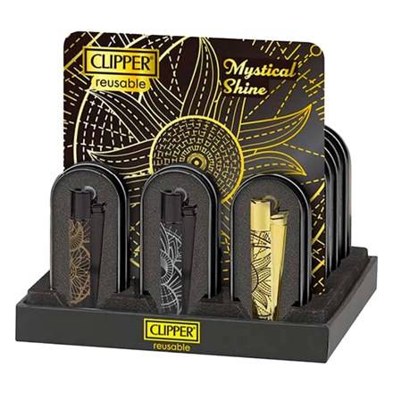 Unveiling the Mystical Shine collection from Clipper Metal, bringing three wonderful designs on Black & Gold Top Clippers. Each sturdy metal Clipper lighter features stunning esoteric artwork that could well have been found in an ancient temple across the globe.