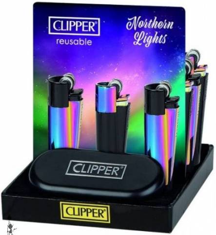 Metal Clipper Northern Lights £8.00Metal reusable clipper in with an iridescent finish. Comes with metal tin. Enter Quantity Weight: 1 kgProduct category: Ashtrays & Lighters