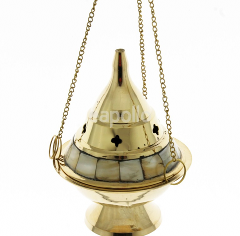 Genuine Mother Of pearl Brass charcoal burner with chain included to suspend or swing. Simply add your favourite herb/ spice/ cermony piece on top of burning charcoal