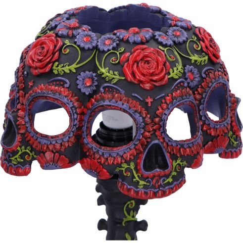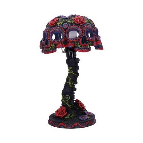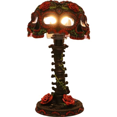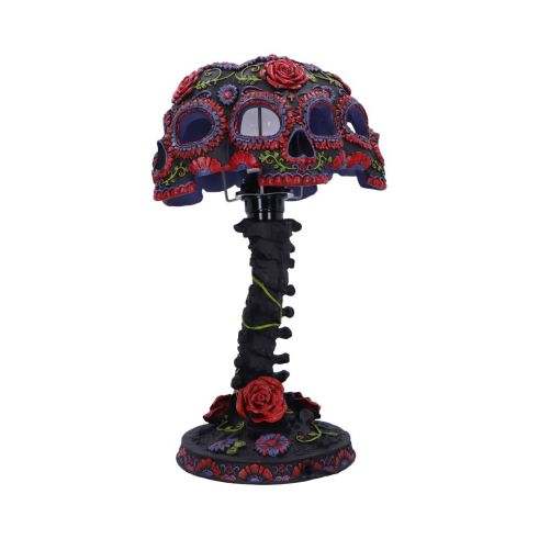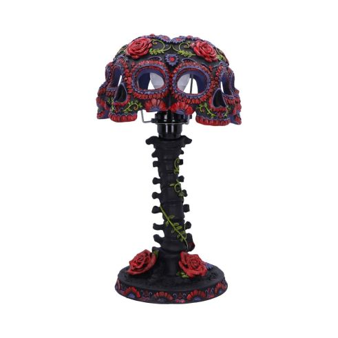 This beautiful Day of the Dead inspired lamp from Nemesis Now would make the perfect addition to any Gothic home! Cast in the finest resin before being expertly hand-painted, this lamp is covered in intricate floral displays, typically found on the Mexican Sugar Skulls. The shade is made from the upper cranium of 5 skulls, while the stem is formed from a floral human spine!