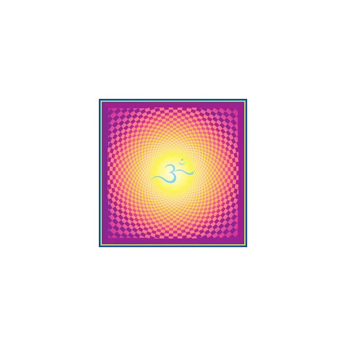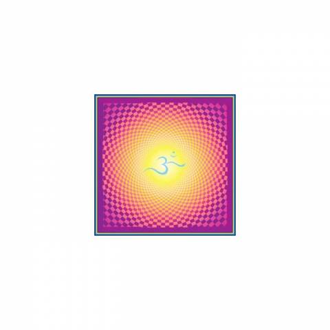 At the heart of the design lies the sacred symbol ॐ (OM), radiating outward in a harmonious gradient of warm golden yellow to deep violet, symbolizing the awakening of consciousness through all levels of existence. The soft glow at the center draws the eye inward, making it a perfect tool for concentration, mindfulness, or altar work.