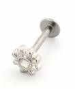 Surgical Steel Labret Bar with Ornate floral Crystal Design – 1.2×8mm & 1.2×6mm