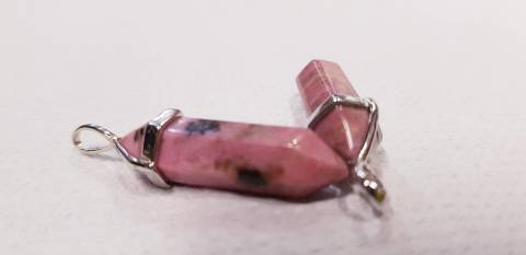 Pendant Fixed Wand £6.00These unique wand pendant all have different semi precious gemstones. All suitable for hanging on a necklace Crystal Moss AgateKambaba JasperBronziteMookiteWhite HowliteRainbow AuraLepidoliteAngel AurahematiteRhodoniteAmberRed Jasper Enter Quantity Weight: 50 gProduct category: JewelleryCrystal: Rhodonite