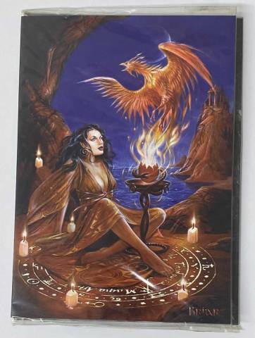 Witness the rebirth of legend with the Phoenix Rising Card, featuring enchanting fantasy artwork by the acclaimed artist Briar. This striking image depicts a mystical sorceress in mid-ritual as the majestic phoenix bursts forth from flame and ash—an eternal symbol of renewal, power, and transformation.