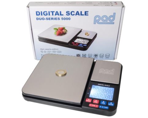 These unique Rad scales are unlike anything we've had before. 2 seperate weighing plates; Plate 1 weighs 5000g by 0.1g, the other plate weighs 500g by 0.01g.