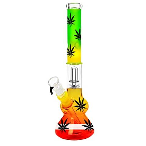 Rasta Leaf Glass Waterpipe with cooling percolator and ice pinch