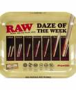 The RAW DAZE is a durable high-quality metal tray known for its unique and humorous "Daze of the Week" design that brings personality to any rolling routine. It features a spacious, smooth surface and curved edges designed to contain all rolling materials and prevent spills.