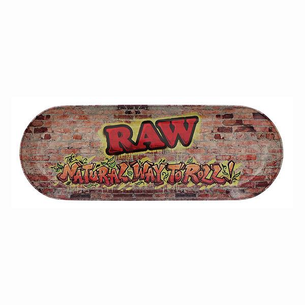 A skateboard shaped rolling tray from Raw made from durable metal/plastic. The deep edges of the tray allows all of your material to stay safely. Sturdy flat base on bottom side of board to ensure your smoking gear is safe! It's unique shape and design seperates it from the standard every day tray, making it hard to mix up with your friends