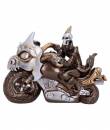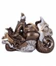 Leaning forward in his seat, gunning the throttle, this skeleton is raring to go. With a large dragon's face as the frame of the bike, intimidating all those that drive by. Cast in the finest resin before being expertly hand-painted with a bronze finish, this piece is perfect for any alternative home or gothic collection.