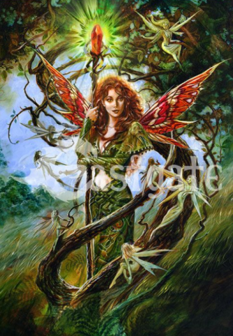 Enter the heart of the enchanted forest with "Spirit of the Tree", a vibrant and mystical artwork by fantasy master Briar. This card features a powerful woodland fae, radiant with natural energy, crowned in foliage and bearing a staff glowing with an emerald light. Her wings shimmer like autumn leaves, and she stands entwined with a living tree, symbolizing deep connection to earth and spirit.