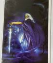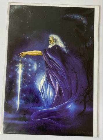 Step into the twilight realm with the Starlight Summoner fantasy art card—an ethereal vision of a robed wizard conjuring a radiant sword of light from the starry void. Wrapped in deep purples and starlit blues, this 20cm x 15cm card captures the quiet power of cosmic sorcery under a night sky alive with celestial energy.
